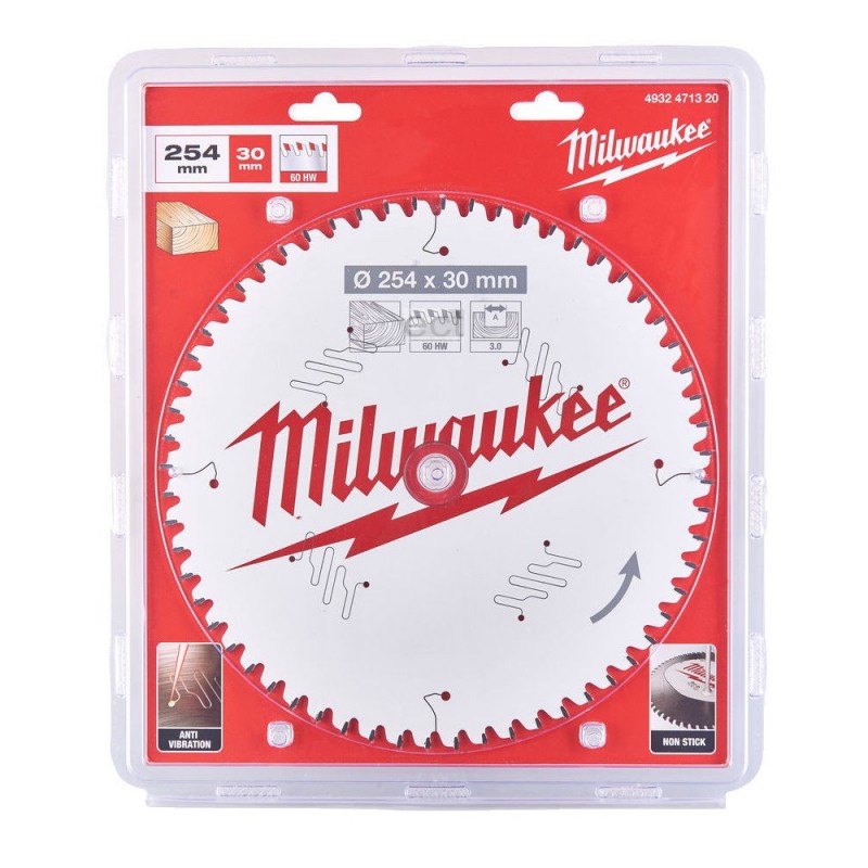 Lama originale Milwaukee per sega circolare Rivestimento in PTFE: taglio a freddo, antiaderente per tagli più rapidi. 60 denti. 254x30