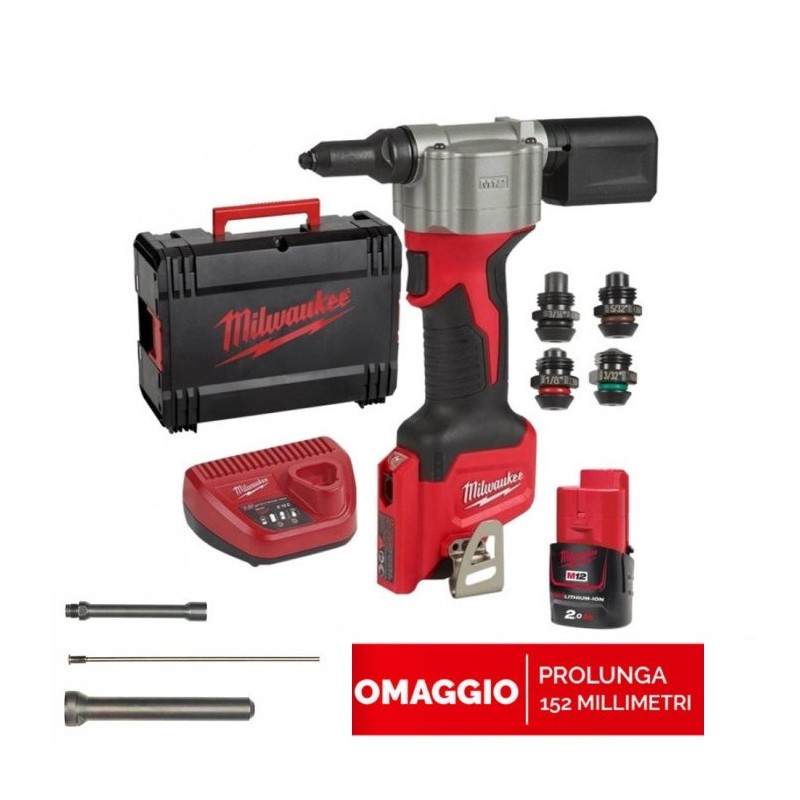 Prolunga per Rivettatrice batteria Milwaukee M 12 BPRT-0 48950100 MM 152 per punti difficili. GARANZIA 3 ANNI SOLO DA RIVENDITORI AUTORIZZATI. HEAVY DUTY CENTRE: Magazzino reale con tutta la gamma Milwaukee in mostra dagli accessori all'abbigliamento, assistenza, servizi ad artigiani e impresa, utensile sostitutivo in caso di guasto. Prova delle macchine...